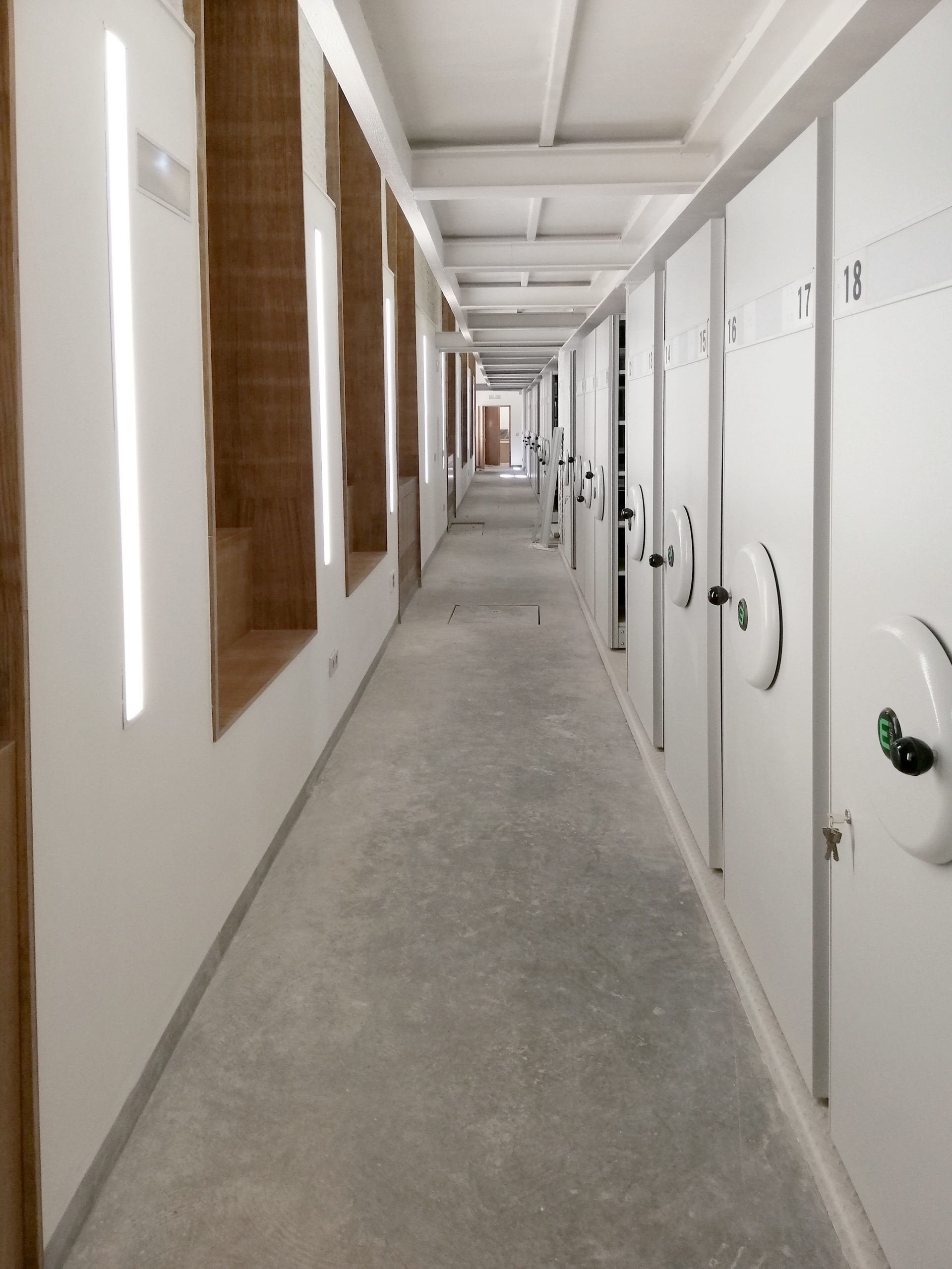 Actualmente, las salas donde se prevé el acceso están a un nivel inferior de los espacios donde se montarían los muebles compactos, por lo que se ejecutará una rampa para garantizar la accesibilidad entre ambas salas.