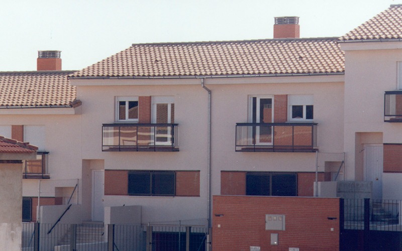 Cada vivienda tiene un jardín delantero donde se encuentra el acceso a la vivienda y la rampa del garaje, y un patio trasero. Las viviendas tipo proyectadas tienen las líneas de carga perpendiculares a la fachada, con un solo vano de forjado y luz entre ejes de 5.80 m. Se proyecta con dos plantas sobre rasante y un semisótano. Al estar la mayoría de las parcelas entre 0.50 y 2 m más bajas que la rasante del acerado, se aprovecha parte de este espacio como garaje, de forma que la cimentación sea más económica.