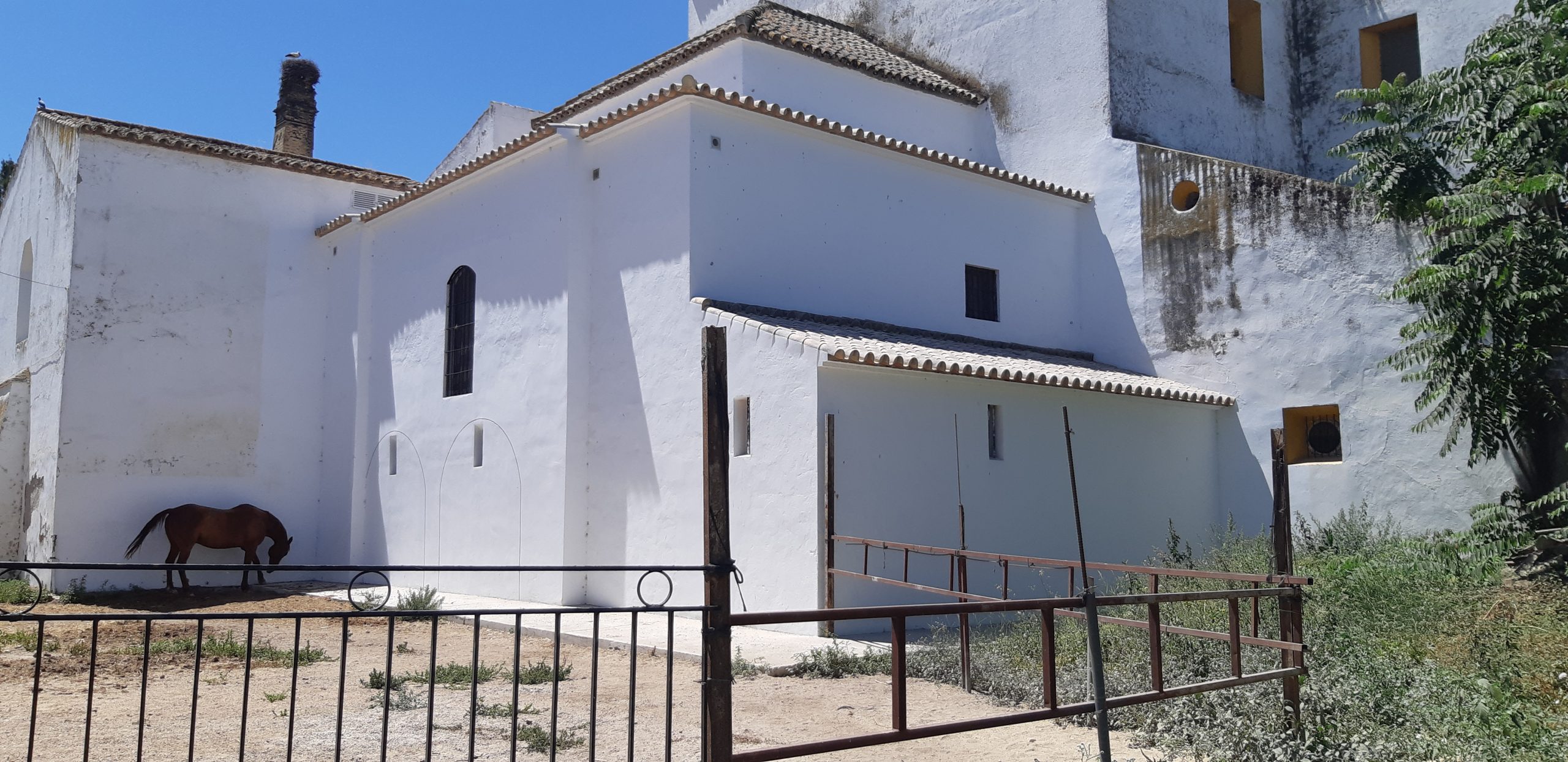 El conjunto inicial se encuentra actualmente aislado dentro del parque V Centenario de reciente construcción y de él sólo se conserva la propiedad de la nave principal del santuario, sacristía, patio y otras dependencias anexas; siendo de propiedad privada el resto de las edificaciones que forman parte del conjunto: claustro, naves laterales, aljibe, noria, albercón y otras edificaciones que se encuentran en el espacio exterior, también de propiedad privada, cercado por un antiguo muro de fábrica de buen espesor.