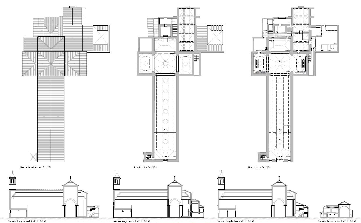 Ejecución de nueva cubierta mediante estructura metálica, rasillones, capa de compresión de microhormigón, aislamiento térmico, impermeabilización y teja cerámica curva similar a la existente en el resto del Santuario. Colocación de líneas de vida sobre las cumbreras de la cubierta afectada para hacer posibles futuras reparaciones y limpieza de los tejados.