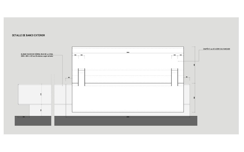 Banco exterior en Museo de Los Dólmenes, Antequera.