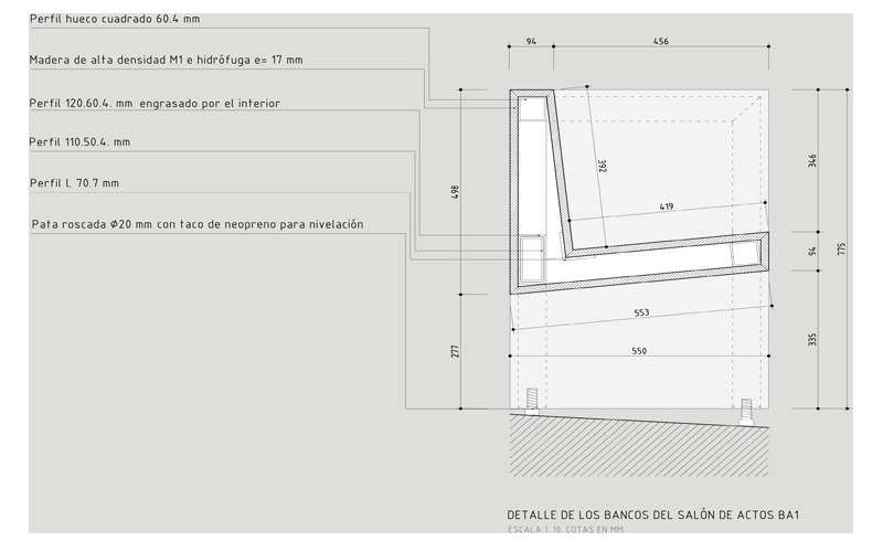 Banco salón de actos en Museo de Los dólmenes, Antequera.