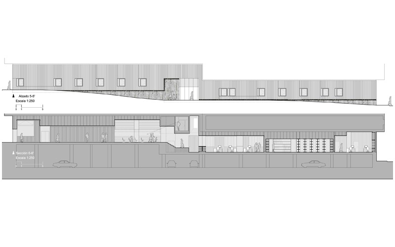 En esta parte del proyecto se evitan los cerramientos fijos de manera que a través del movimiento de la cinta el espacio se contrae o se dilata donde interese pero siempre fluye entre los diferentes usos; asimismo existen elementos móviles que permiten cerrar el espacio momentáneamente cuando lo soliciten los usuarios.