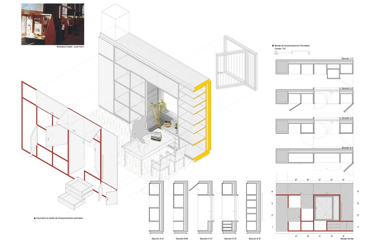 Esta envolvente de espesor variable permite también dotar a las zonas de trabajo de generosos huecos que por su profundidad y materialidad adquieren categoría de lugares con vocación doméstica susceptibles de ser colonizados poco a poco por los usuarios.