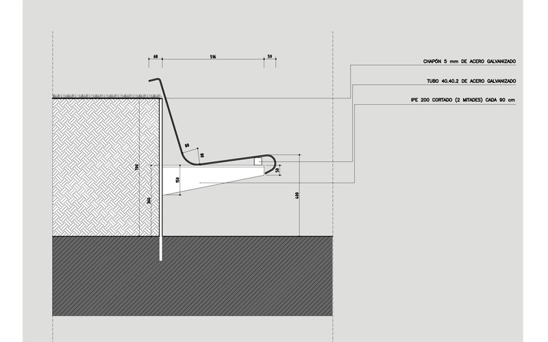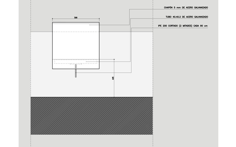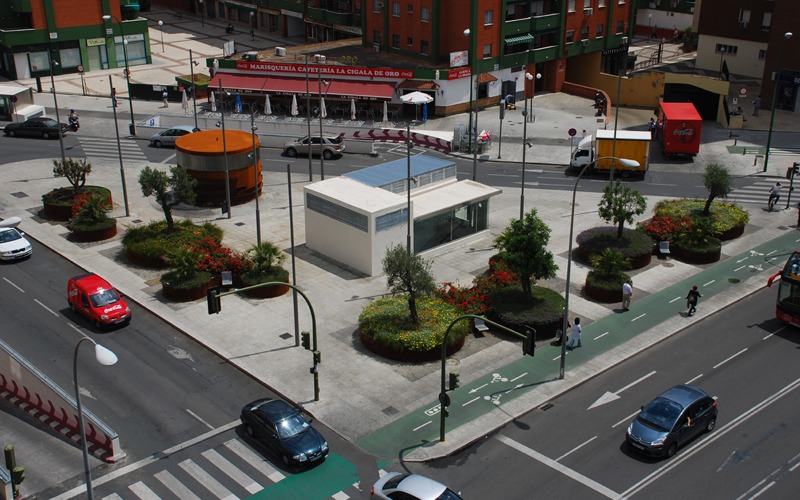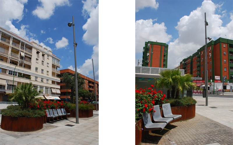 Jardinera y asientos para el espacio público ubicado sobre el aparcamiento subterráneo de José Laguillo.