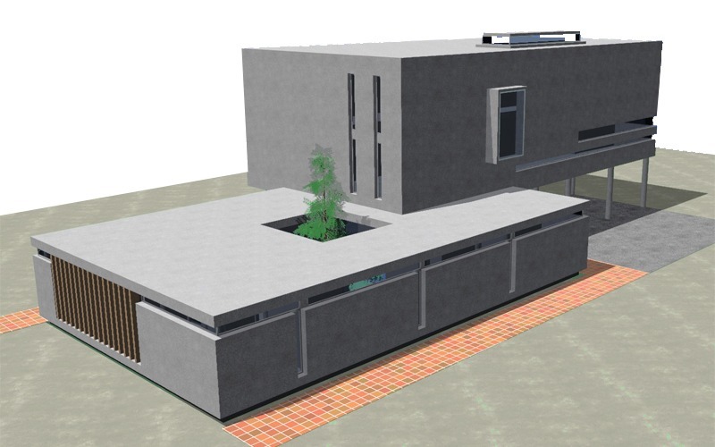El Proyecto debe contener las oficinas de dos entidades distintas, Aumar y la Demarcación de Carreteras de Cádiz. Por ello el edificio se divide en dos; una zona que acoge las oficinas de Aumar, de una sola planta, que se desarrolla alrededor de un patio, de un aspecto cerrado y masivo, protegido por lamas de hormigón y por otro lado las oficinas de la Demarcación de Carreteras ocupan un edificio que se eleva sobre pantallas de hormigón y que se asoma a la Bahía intentando capturar las vistas existentes.