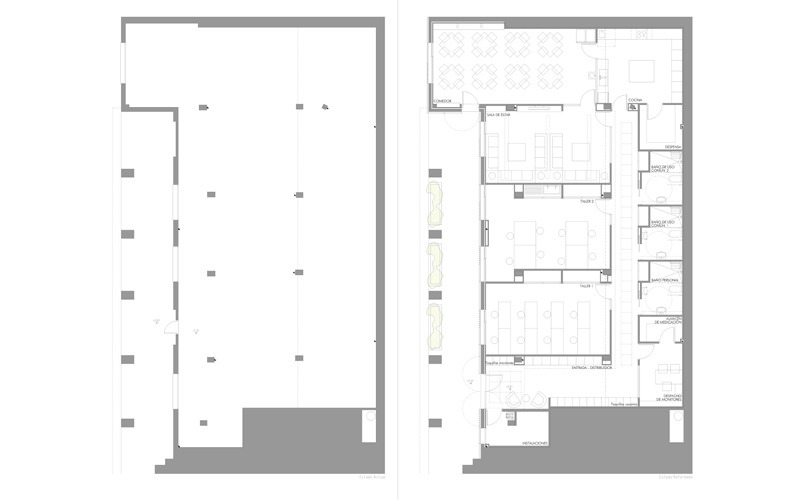 La intervención consistió en la adaptación del espacio para albergar las siguientes estancias: