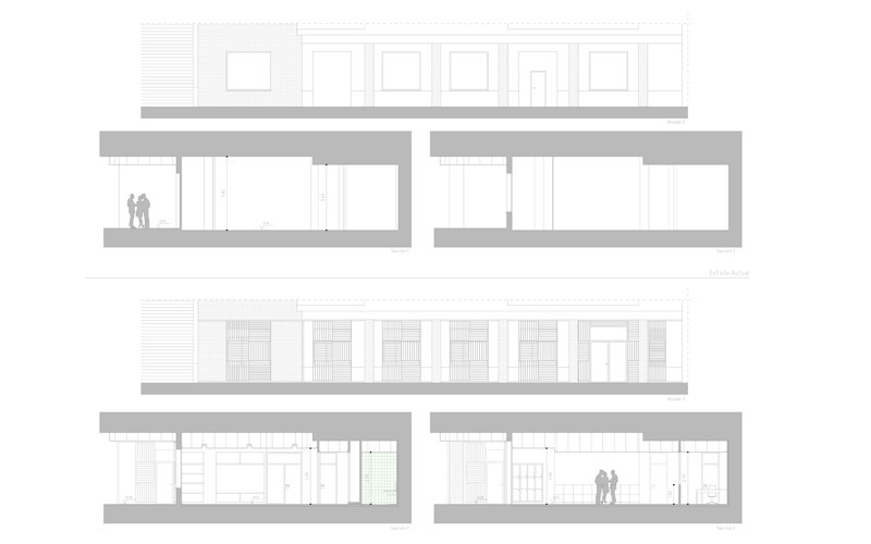 El local se encuentra en la planta baja de un edificio de viviendas, empotrado contra un talud natural del terreno. La parte trasera del local es un muro de contención, lo que limita la posibilidad de disponer de luz o ventilación natural en ese frente. La fachada es de ladrillo visto, y el interior del local se encontraba en bruto, aunque la fachada al soportal estaba acabada.