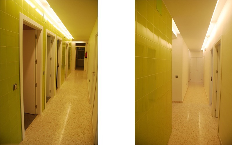 La intervención se articula entorno al patio central existente mediante dos crujías paralelas a la fachada y crujías simples alrededor del patio, existiendo dos patios más: uno lateral y otro trasero. El edificio cuenta con planta baja, primera, segunda y un semisótano de altura reducida con acceso desde el patio lateral.