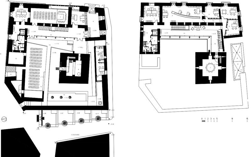 La rehabilitación se centró en recuperar y resaltar las características originales del conjunto, respetando su doble personalidad de castillo y palacio. Se despejó el patio de armas, creando una sucesión de espacios de acceso, paso, aljibe, fosa y un lugar para actos o conciertos al aire libre. La limpieza de las estructuras que contaminaban tipológicamente el conjunto permitió la identificación de sus partes y la recuperación de su carácter exento.