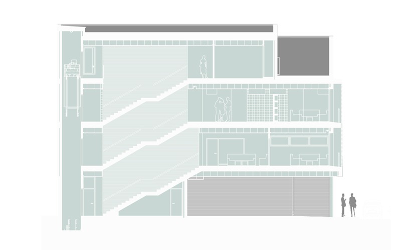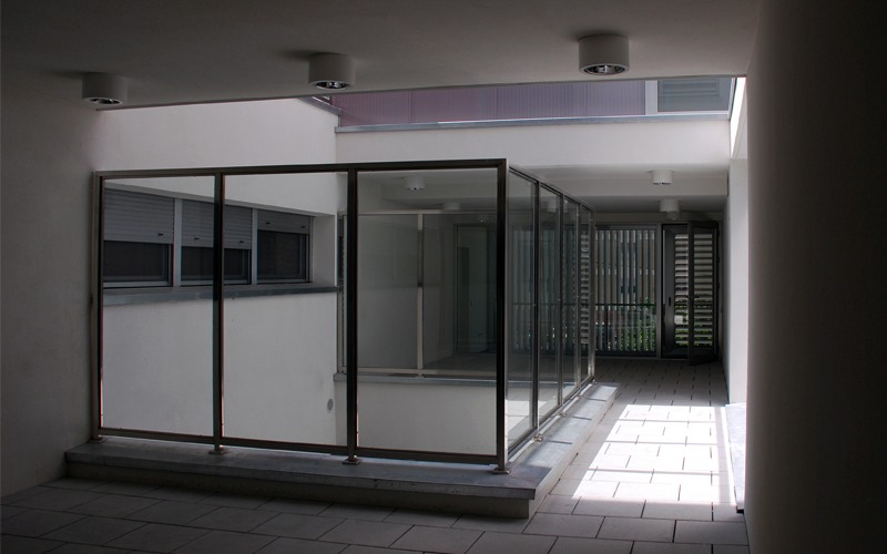 El programa se compone de un Club Social en planta baja y una Casa-Hogar en las plantas superiores. El proyecto se asienta sobre una doble decisión: por un lado, hacer un edificio que responda a la ciudad y a las necesidades de un espacio urbano; por otro, crear un edificio introvertido que disfrute de los espacios interiores y tenga la privacidad necesaria que debe tener una casa. Por ello, el edificio se alinea a fachada y genera patios interiores donde se vuelcan la mayor parte de sus estancias.
