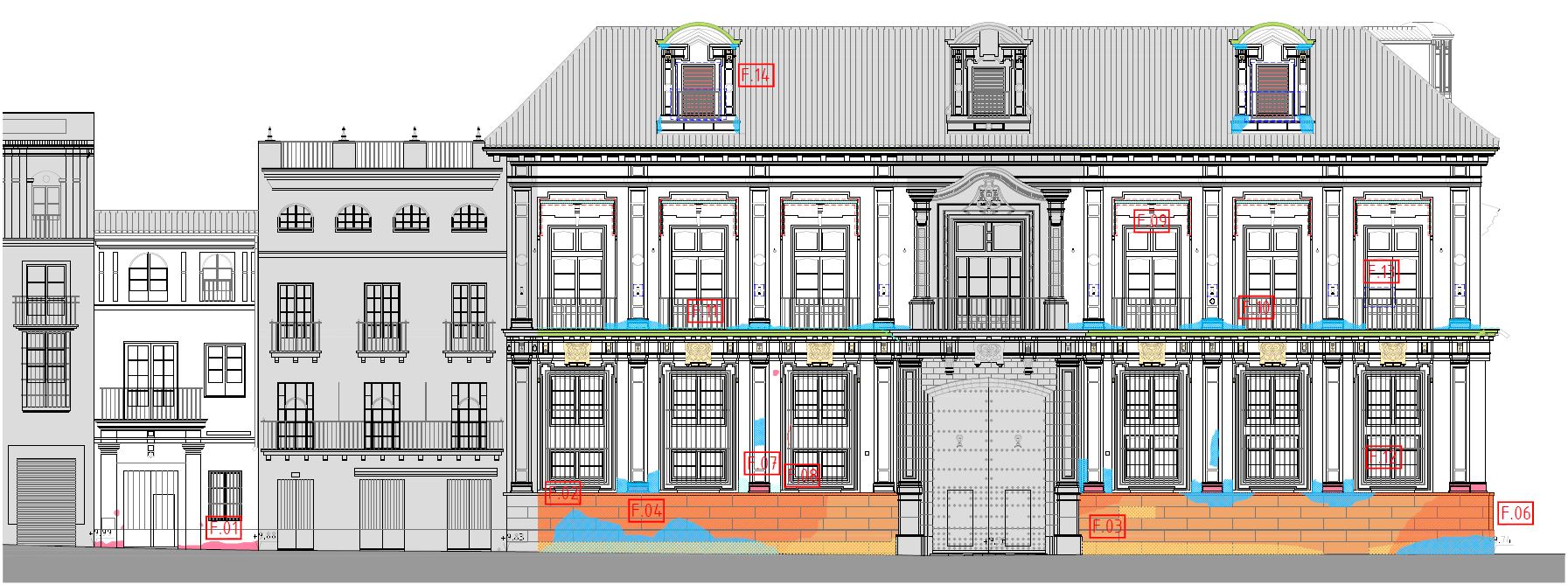 El proyecto consistió en la restauración de las fachadas del Palacio Arzobispal de Sevilla, con el objetivo de consolidar y rehabilitar los elementos arquitectónicos deteriorados, asegurando su estabilidad y preservando su valor histórico.